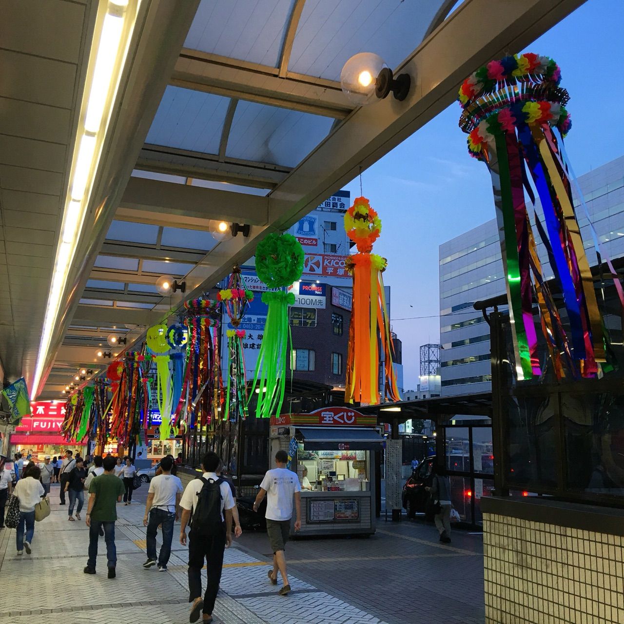 駅周辺は七夕飾りやテントが建てられたりで